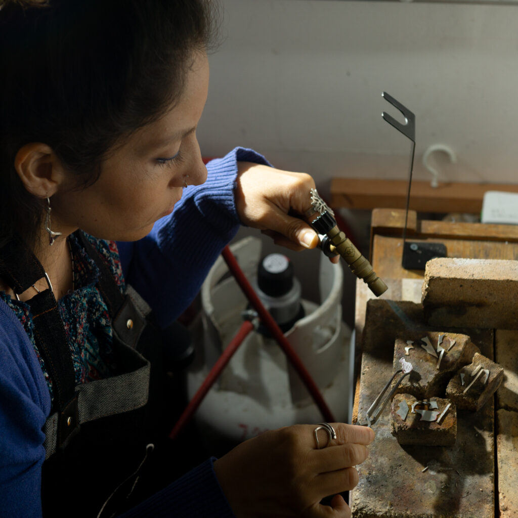 Soy Paola Kohen, diseñadora y orfebre con más de 18 años explorando el universo de los metales y las gemas. Para mí, cada pieza es una lección: del boceto inicial a la soldadura final, descubro infinitas posibilidades de forma, textura y color. Me he sumergido en técnicas ancestrales y he probado procesos modernos, siempre con la misma curiosidad de quien aprende día a día.